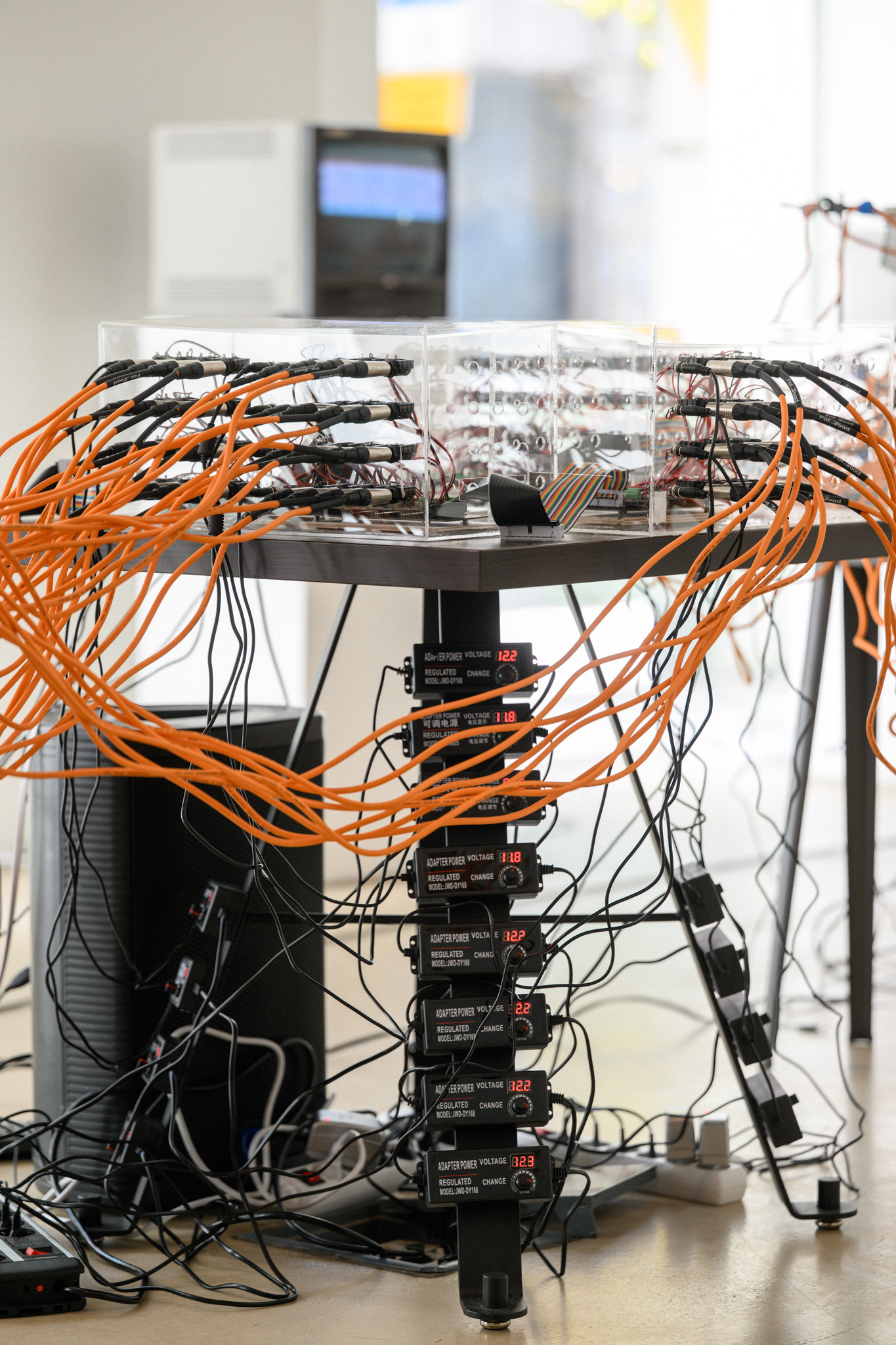 Powered by AI large language models, each keyboard is prompted to type out various text related to the ‘sound of water’, which is then broadcast to the audience via analog TV screens. They conversate with one another about content related to water and sound, touching on historical events, scientific description, poetry, and other philosophical musings. As the keyboard ensembles type out text, the soundscapes of water streams, rivers, rain, or babbling brooks emerge from the collective sounds of individual keyboards typing en masse.